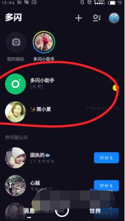 6、在消息界面我们可以看到【多闪】会向你推荐你可能认识的人,点击后方【加好友】即可等待对方验证添加对方为好友