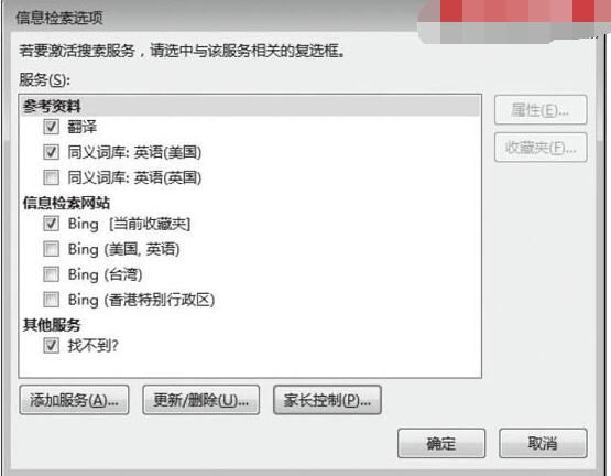 弹出“信息检索选项”对话框,取消勾选所有复选框,如“参考资料”和“信息检索网站”选项列表中的复选框,单击“确定”按钮,即可将“信息检索”窗口关闭,如图3所示。