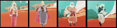 1、光遇九色鹿联动季节一共有4为先祖已经正式爆料了,如下图所示,先祖身上的斗篷、发型、裤子以及道具等都是可以在季节期间兑换的。