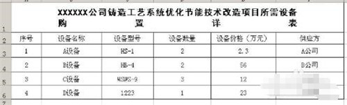 8.如果需要将此表插入到word文档以便其他使用,也很简单。先将刚做好的Excel表格保存为一个文件名《设备表》到桌面上。将此页的页面设置成横 向,否则表格会显示不全的。在Word文档中需要插入的地方,点击一下鼠标,然后选择上面“插入”---“对象”——“由文件创建”,然后找到刚刚保存的 《设备表》,插入,确定,然后就插入到Word中了。效果图如下: