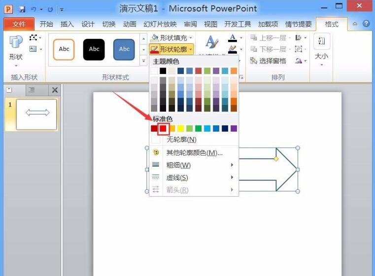 6、点击无填充颜色选项之后,再找到选择轮廓选项,点击该选项在其内选择颜色为红色,如图所示: