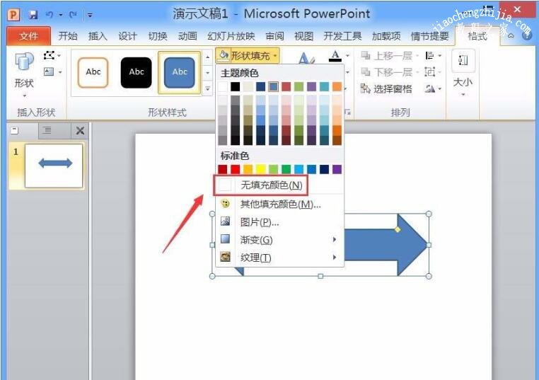 5、点击形状填充选项,在其下拉菜单里找到无填充颜色选项,如图所示: