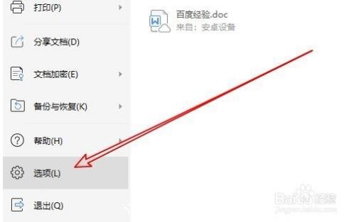 在弹出的wps2019文件下拉菜单中,我们点击“选项”菜单项。