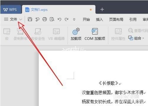 首先在电脑上打开wps2019,点击左上角的“文件”菜单项。