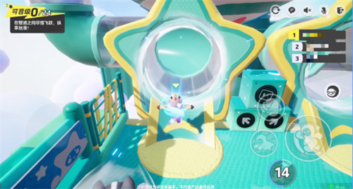 当我们通过摆锤之后,会进入连续管道之中,这时只需按照路线正常前进即可。出管道后,我们需要通过蹦床跳向天空。此时,如果正常下落,则会进入粉色的垂直管道之中。但是这里我们就要再次利用飞扑,越过垂直管道,进入近路。