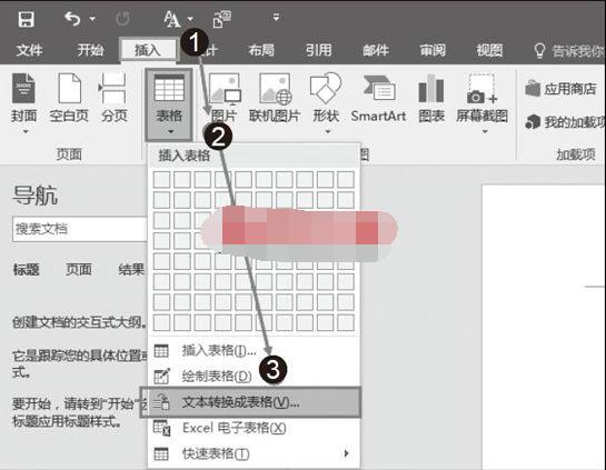 步骤1:选中所有选择题,切换至“插入”选项卡,在“表格”选项组中单击“表格”按钮,在“表格”按钮下拉列表中单击“文本转换成表格”命令,如图2所示。