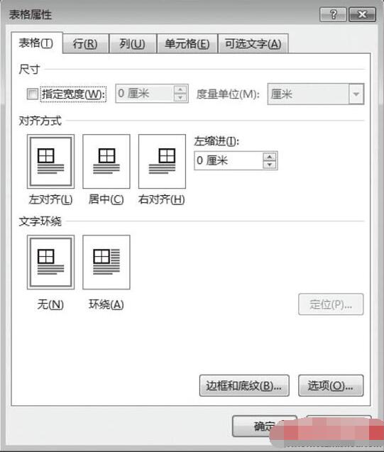步骤3:弹出“表格属性”对话框中,单击“选项”按钮,如图3所示。