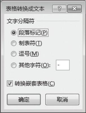 步骤6:弹出“表格转换成文本”对话框,选中“段落标记”单选按钮,然后单击“确定”按钮,如图7所示。