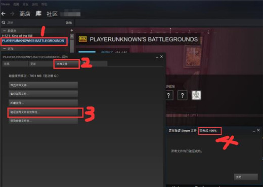 5、然后进入steam游戏库,右击绝地求生--属性--本地文件--验证游戏的完整性,重新修复即可