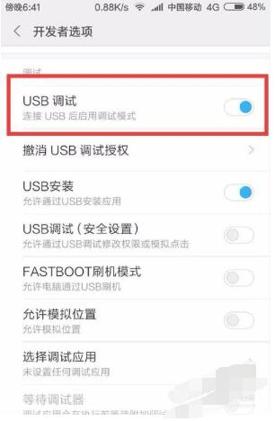 3、关闭USB调试尝试。