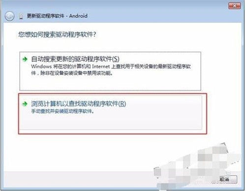 5.然后就会打开一个窗口,让用户选择安装的驱动程序来源,我们选择下面的浏览计算机以查找驱动程序软件。