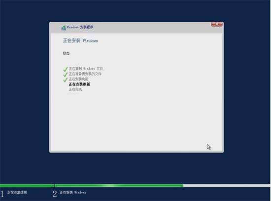 安装完成后,自动重启。第一次启动Win2019会进行一些配置,如图: