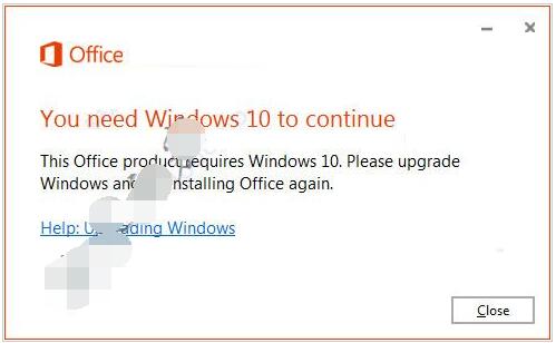 8、注意:如果你的电脑不是win10系统,那就安装不了office2019专业增强版,会弹出如下提示: