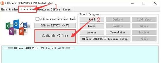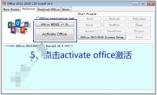 2、如何激活--安装完成后,点击Utilinties 点击Actiyate office一键激活