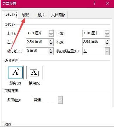 4、接着在页面设置窗口中点击“纸张”选项卡
