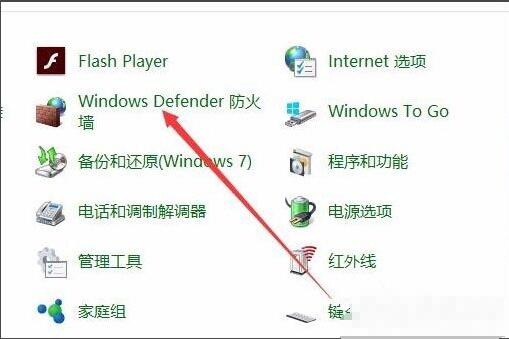2、点击窗口中的“Windows Defender防火墙”图标;