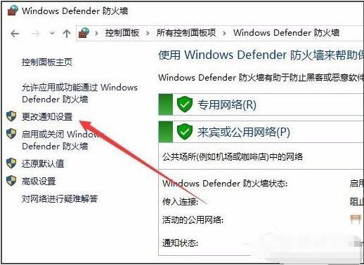 3、在打开的窗口中,点击左侧边栏的“更改通知设置”菜单项;