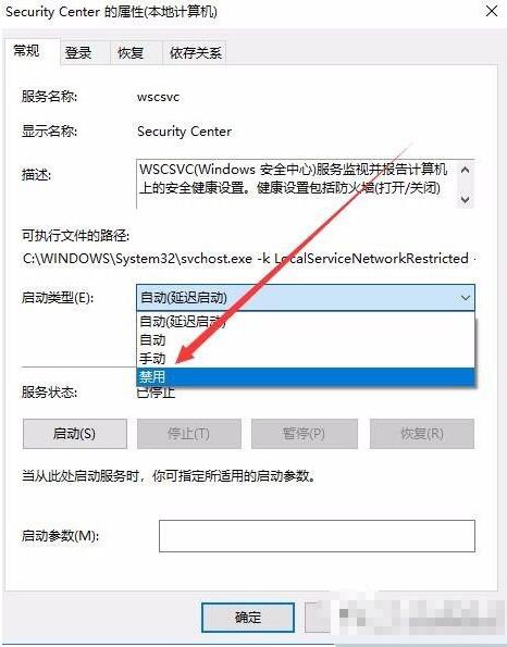 5、接下来再点击“启动类型”菜单项,在弹出的下拉菜单中选择“禁用”菜单项。最后点击确定按钮,这样以后就不会再有安全警告的提示窗口了。