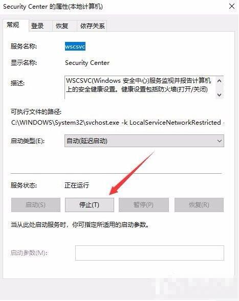 4、在打开的服务项属性窗口中,点击“停止”按钮,停止该服务的运行;