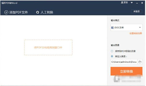 2、在“福昕pdf转Word”界面中,将PDF文档拖拽到窗口中,选择目录后,点击“立即转换”即可。