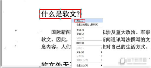 2、用已选择的工具,把需要修改或去除的选择起来,然后点击鼠标“右键”,选择“属性”。