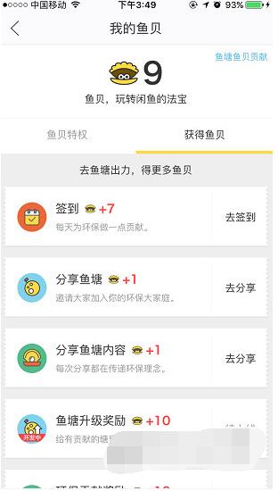 3、分享鱼塘内容,每天首次分享可获得一个鱼贝。