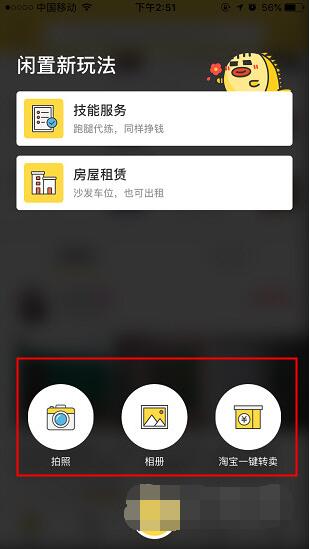 1、首先打开闲鱼APP并登录账号,点击菜单栏的“+”符号,可以从相册里选择商品图片、可以给商品进行拍照上传或者是淘宝一键转卖;
