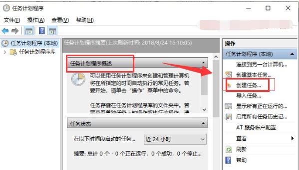 在Win10任务栏的Cortana搜索框中输入“任务计划程序”,通过搜索结果打开“任务计划程序”桌面应用。点击“右侧窗格”中的“创建任务…”。如图: