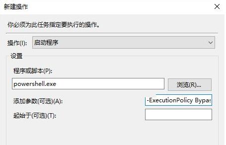 操作:启动程序 程序或脚本:powershell.exe 添加参数:-ExecutionPolicy Bypass -Command “Checkpoint-Computer -Description ”Startup RestorePoint “ -RestorePointType ”MODIFY_SETTINGS“”