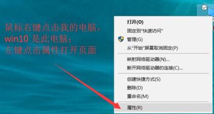 3、在桌面上面有我的电脑或者此电脑的就简单的啦。鼠标右键点击我的电脑,win10 显示的是此电脑。左键点击属性打开页面,打开的页面也是同上面的一样的。