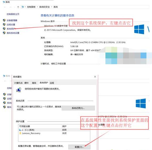 1)首先,不管通过什么方式创建系统还原点,我们都需要先开启系统还原功能;