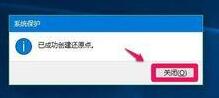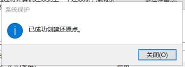 9、创建系统还原点很快完成,点击【关闭(O)】,至此,使用系统内置功能创建系统还原点的操作成功完成。