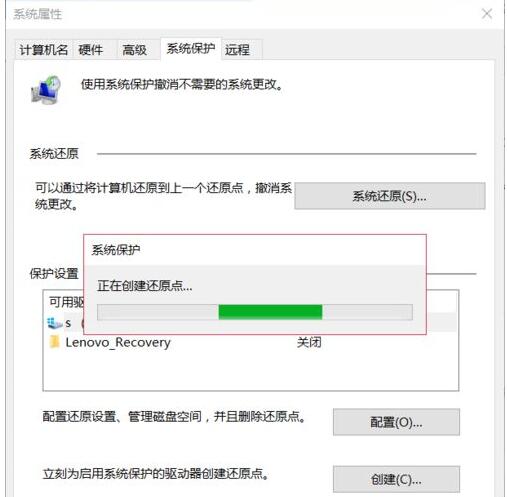 8、我们点击创建(C)以后,开始创建系统还原点;
