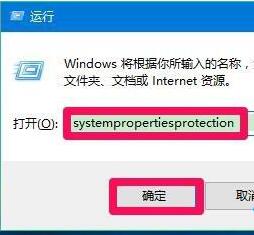 2、在运行对话框中输入systempropertiesprotection(系统性能的保护)命令,点击确定或者回车,打开系统的【系统保护】;