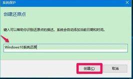 7、此时,会打开系统保护 - 创建还原点对话框,我们在框中输入:Windows10系统还原,再点击:创建(C);