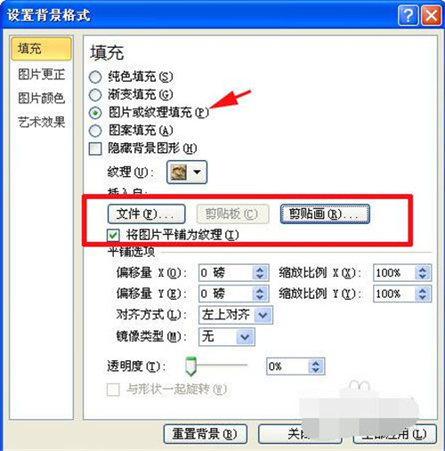 插入漂亮的背景图片:选择“图片或纹理填充”,在“插入自”有两个按钮,一个是自“文件”,可选择来本机电脑存备的PPT背景图片,一个是自“剪切画”,可搜索来自“office.com”提供的背景图片,需联网哦: