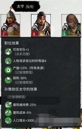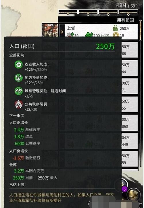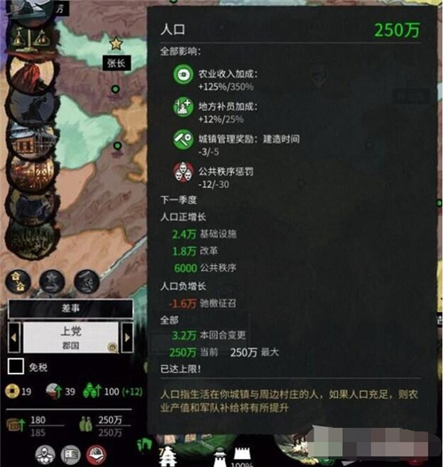 太守的特性也能够促进人口增长,同时某些改革、角色技能和其他来源也会对人口增长有一定的帮助。