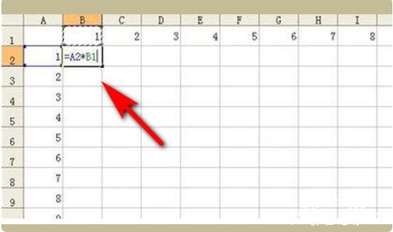 2.计算第一个结果,很简单,就是在B2第一个输入=A2*B1,只进行这个计算是没错的。