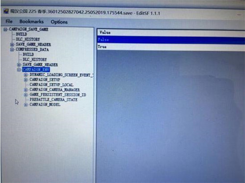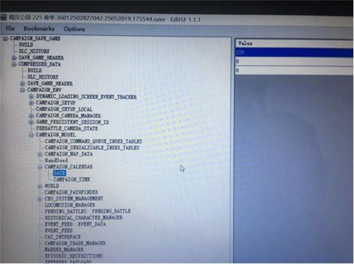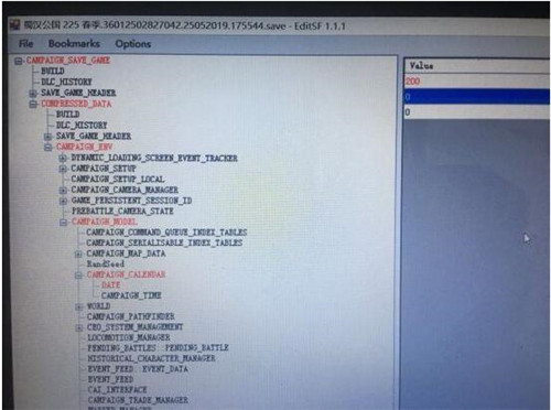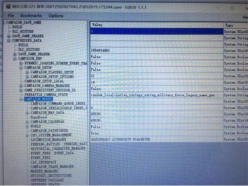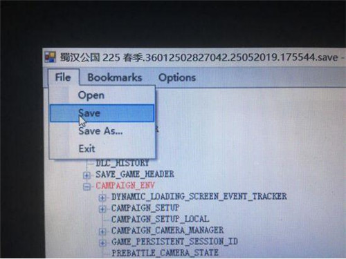 就以在下的蜀汉公国225存档为例子,editsf点击左上角file/open,选择此存档,打开会出现campaign_save_game,此即为吾战役存档。