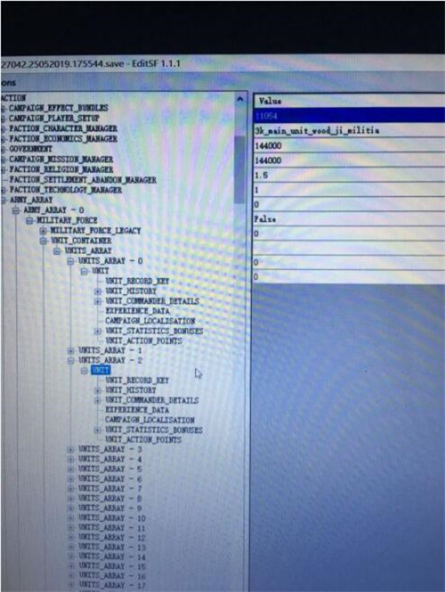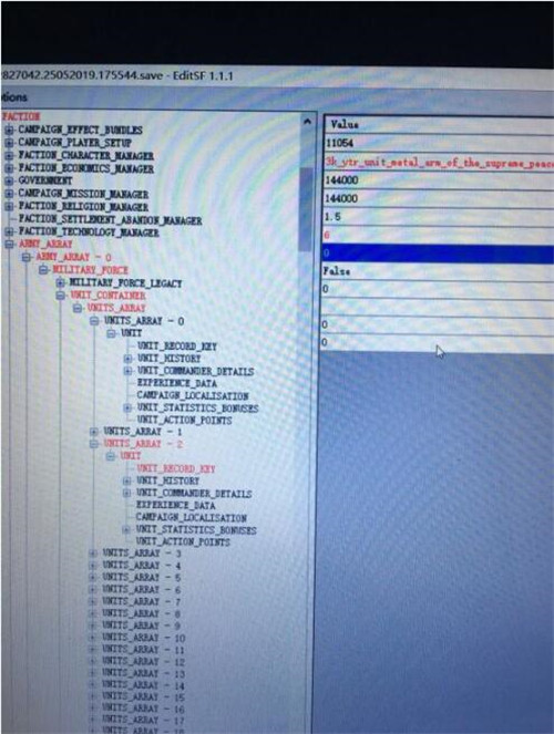 用editsf修改你存档里的军团配置,这是最简单的,咱们还以刘备势力为例子,比如我想把黄巾军修改至其中,先还用editsf打开需要修改的存档,依次选择compressed_data/ campaign_env/ campaign_model/ world/ faction_array/ army_array/ 里面就是你目前的军队了。