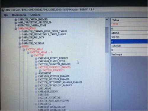 如果实在想修改财政,修改项是在campaign_model下,点击其下的world,然后选第一个faction_array,这个里面有很多可修改的,在此先说一下修改财政。