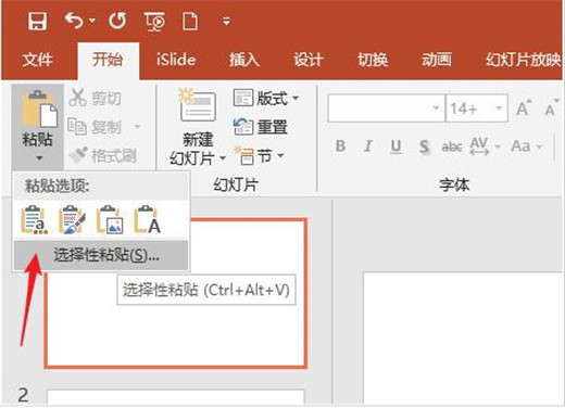 6、打开PPT,在文档中点击【粘贴】—【选择性粘贴】。