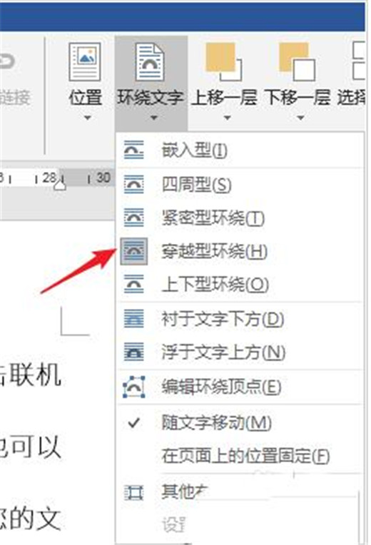 3、选中形状,在【环绕文字】中使用一种环绕方式。