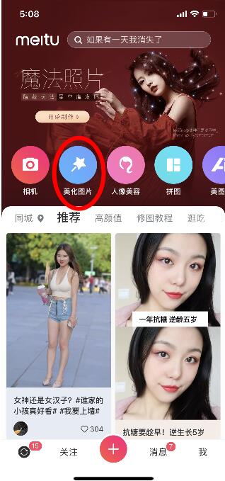打开手机美图秀秀APP。