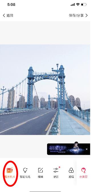 选择并点击相册中图片,点击“魔法照片”。