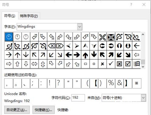 1.接下来我们就可以在界面中看到打开的符号窗口了,然后我们可以在下方的字体处进行搜索我们想要插入的字体符号。比如我们搜索wingdings,然后就会出现各类的箭头方框等符号。