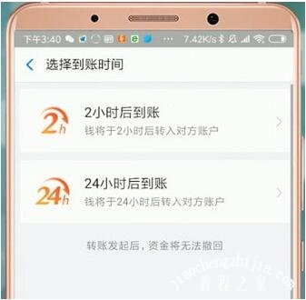 4、在这里我们可以选择延迟2小时到账,也可以选择延迟24小时到账。