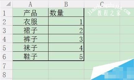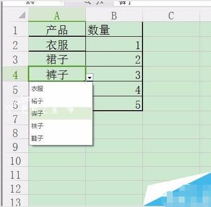 3、将需要使用的数据填入表格,例如下图。产品分为5类,如果都是用手工输入会小号很多时间,下拉菜单的功效就体现出来了。