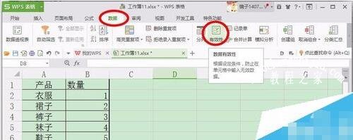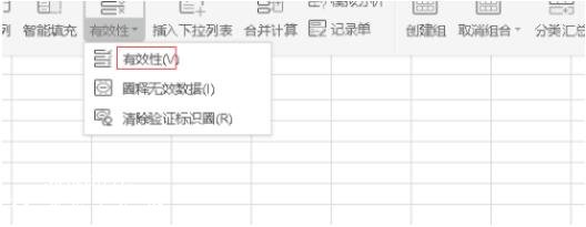 根据下图的进行操作,选定需要使用下拉菜单的单元格或者是区域,点击数据,选择有效性,会出现一个数据有效性的弹窗。