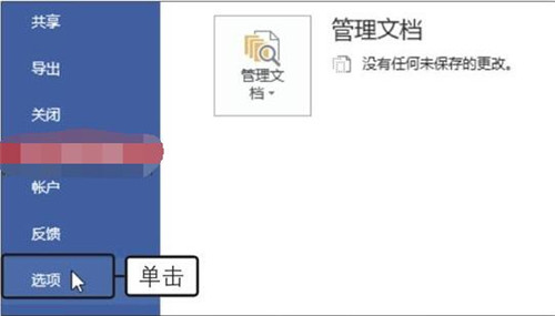 启动任意一个Office 2019组件,如Word组件,新建一个空白文档,单击“文件”按钮,在弹出的菜单中单击“选项”命令,如下图所示。